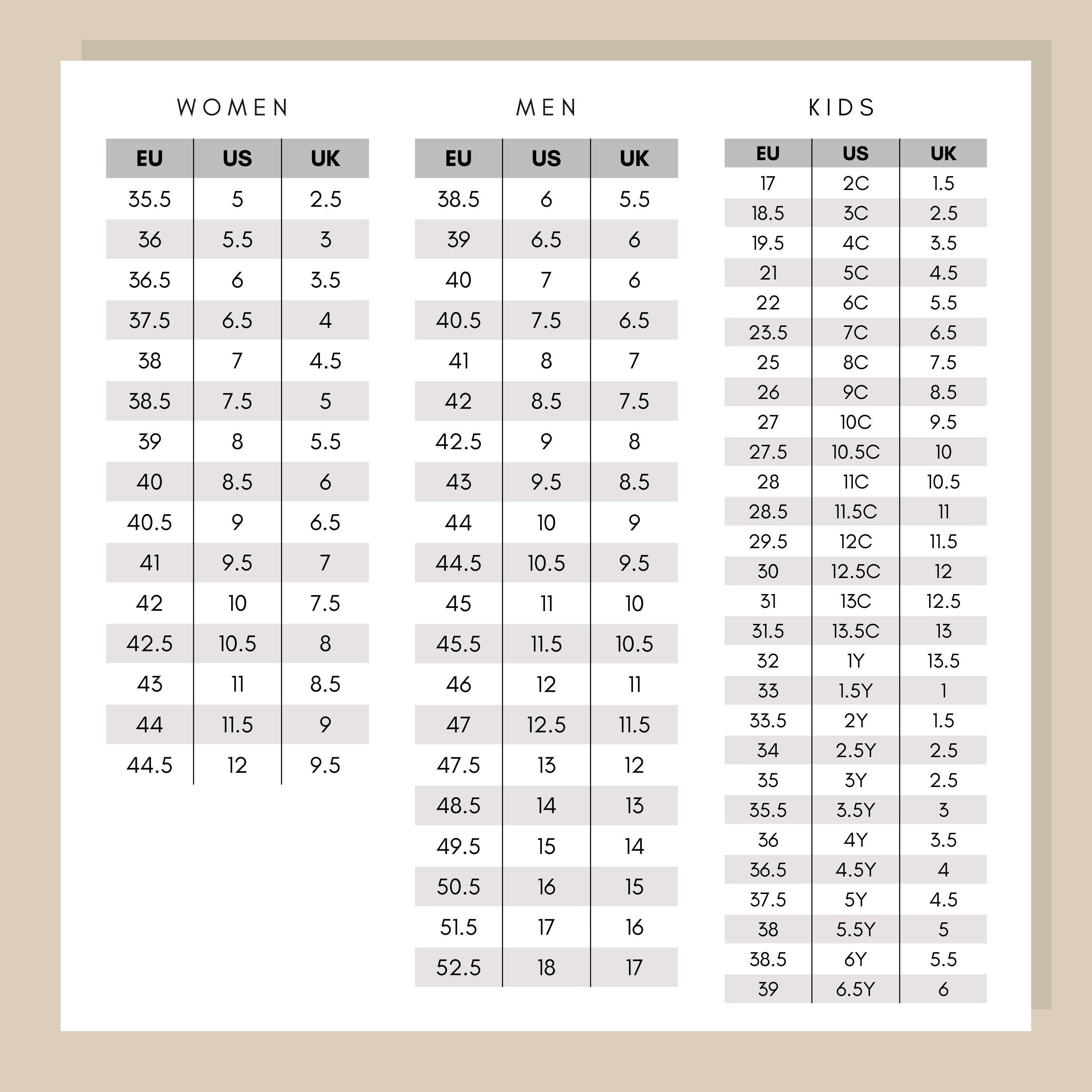 air force guide des tailles
