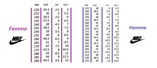 nike quelle pointure prendre