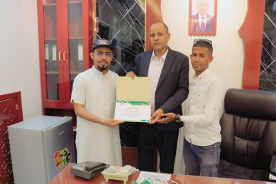 تسلم مدير عام مديرية سيئون الأستاذ محمد عوض العامري، اليوم، شهادة شكر