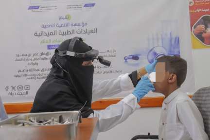 مخيم العيادات الطبية الميدانية المقام في مستشفى شبام العام الذي تنفذه
